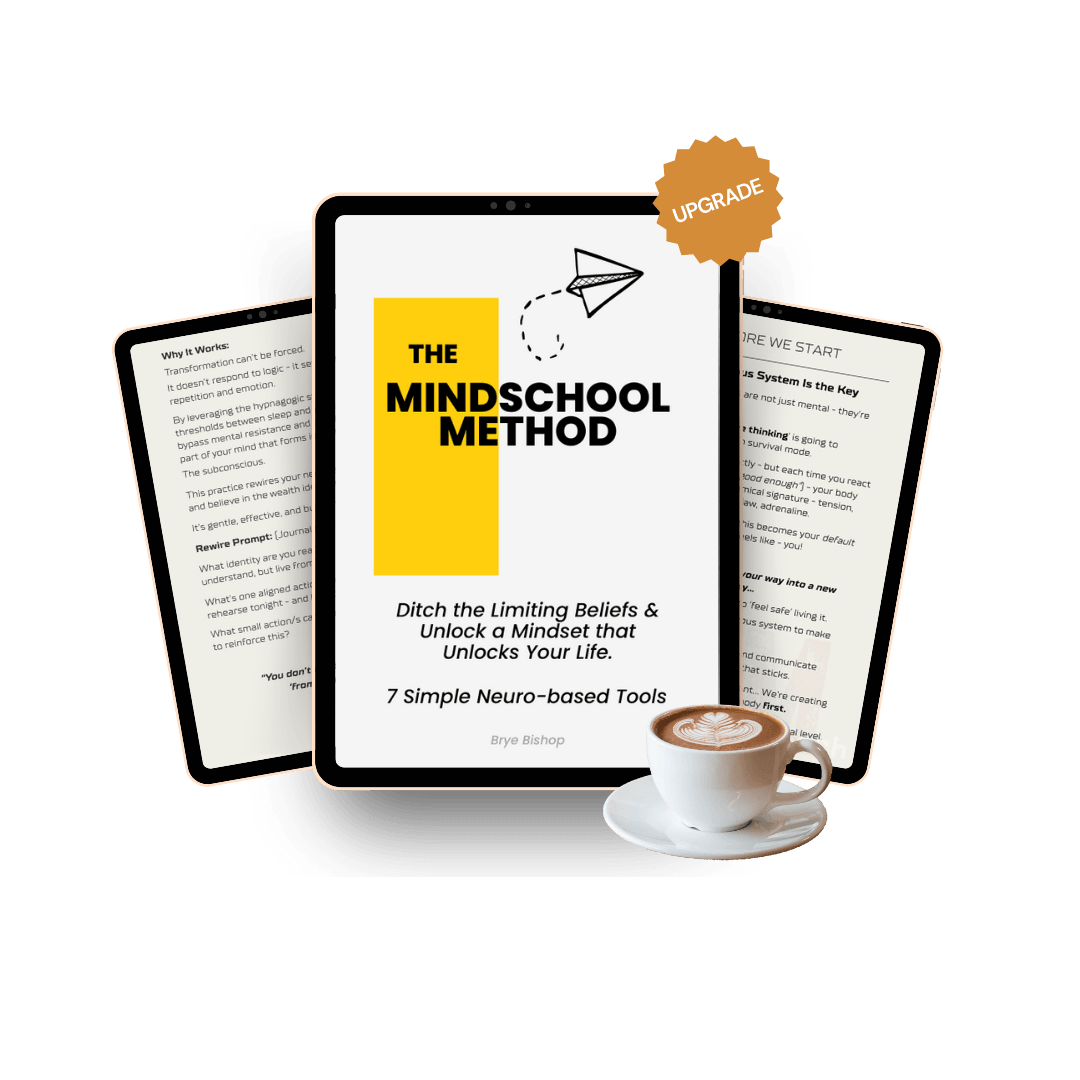 You’re about to unlock a powerful 7-Day process to rewire your wealth mindset. But why stop there? Supercharge your results by adding The MindSchool Method (PDF/workbook) to your order... Build lasting mental patterns for wealth creation with this practical toolkit… 7+ neuroscience-based tools to rewire identity, self-worth, and money beliefs at the deepest level. So your progress sticks.